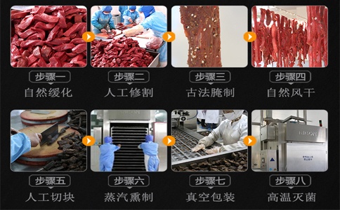 风干牛肉干中最重要的一个环节就是风干,使得牛肉中的大本分或者全部水分蒸发掉,所以称之为风干牛肉干。